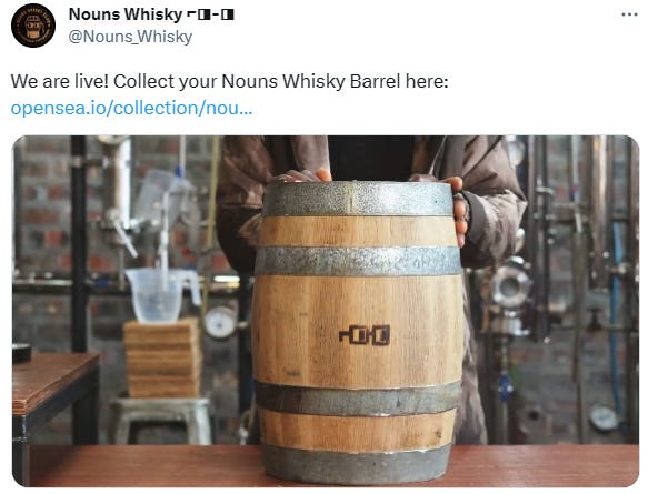 Nouns Whisky barrel sale is live and 4 of them already sold