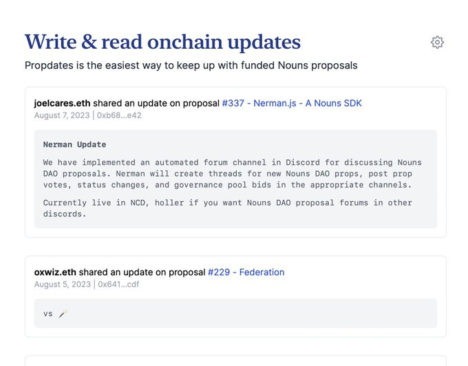 PropDates - a way for proposers and community to stay in sync via onchain proposal updates - by Wilson and mrtn - Twitter.