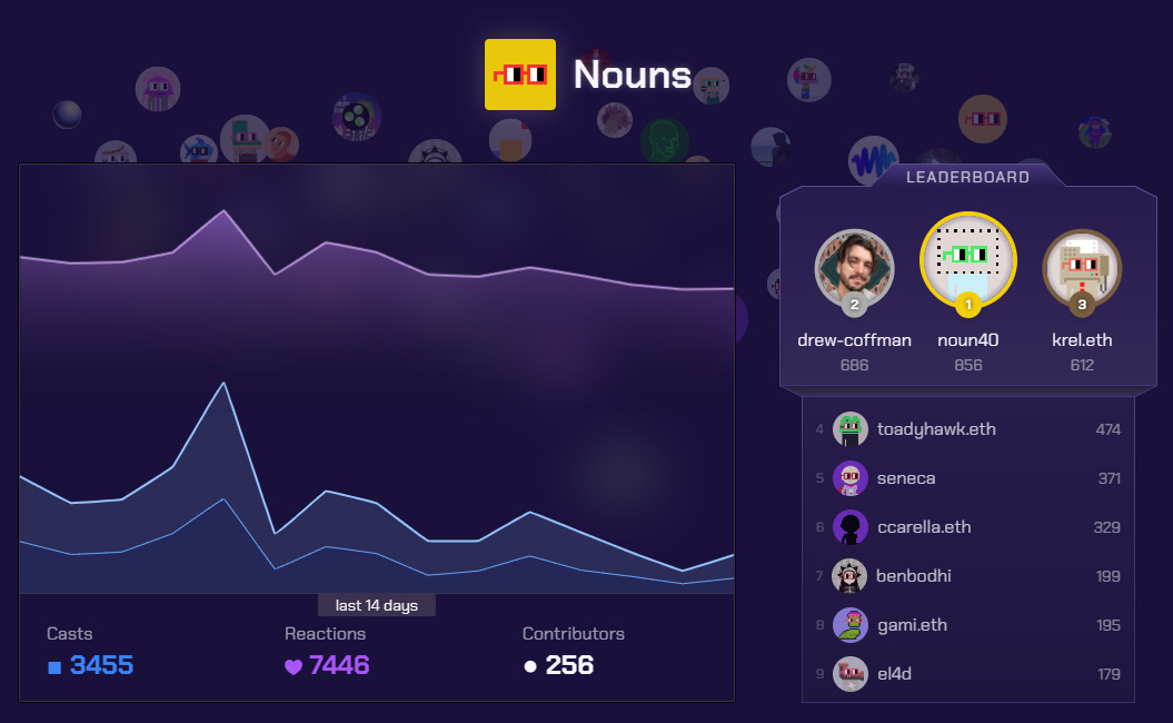 Great website with Nouns’ Farcaster channel analytics, built by rafi.